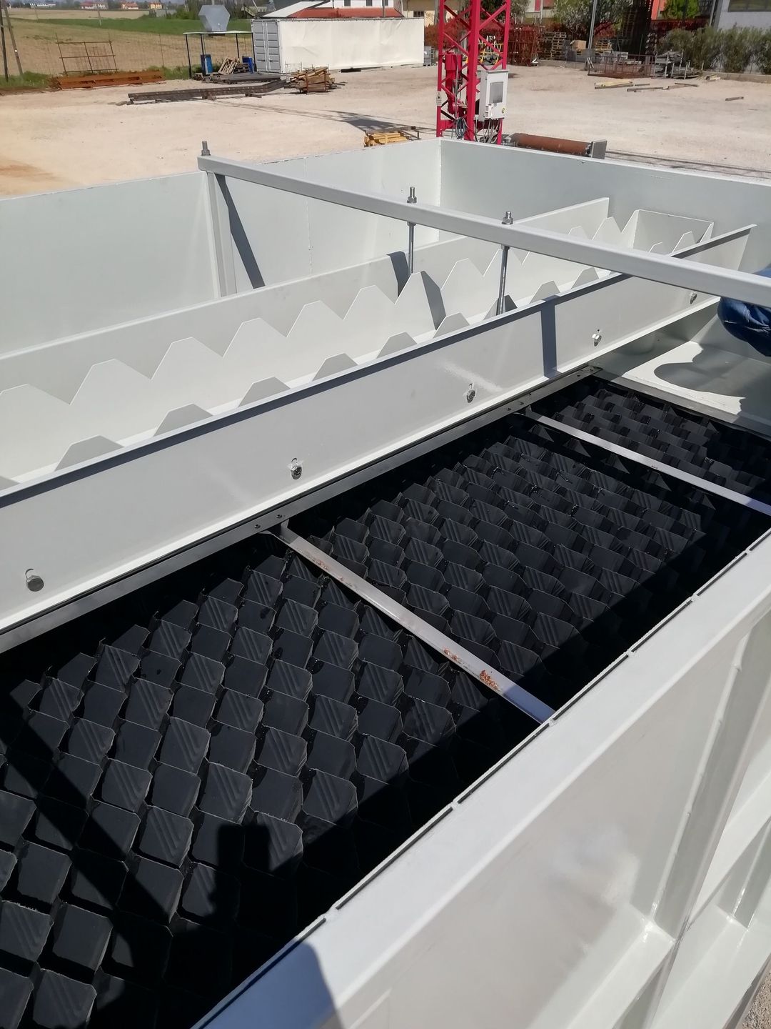 All’interno della vasca sono installati opportuni setti/distributori atti a ripartire omogeneamente il flusso liquido in ingresso.