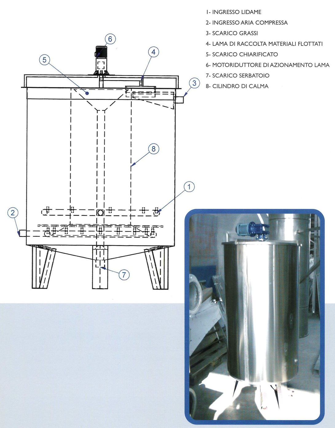 Nella depurazione e nel trattamento dei liquami, si verificano in alcuni casi problemi legati alla elevata quantità di sostanze grasse presenti. Il flottatore dinamico serie og riduce considerevolmente la massa grassa presente nel refluo rendendolo compatibile con le fasi di trattamento evitando così pericolose anomalie del processo di depurazione.