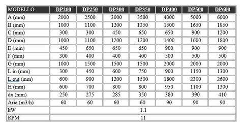 La capacità di trattamento varia da Mc/h 15÷50 con volumi di accumulo della macchina da Mc 6÷22.