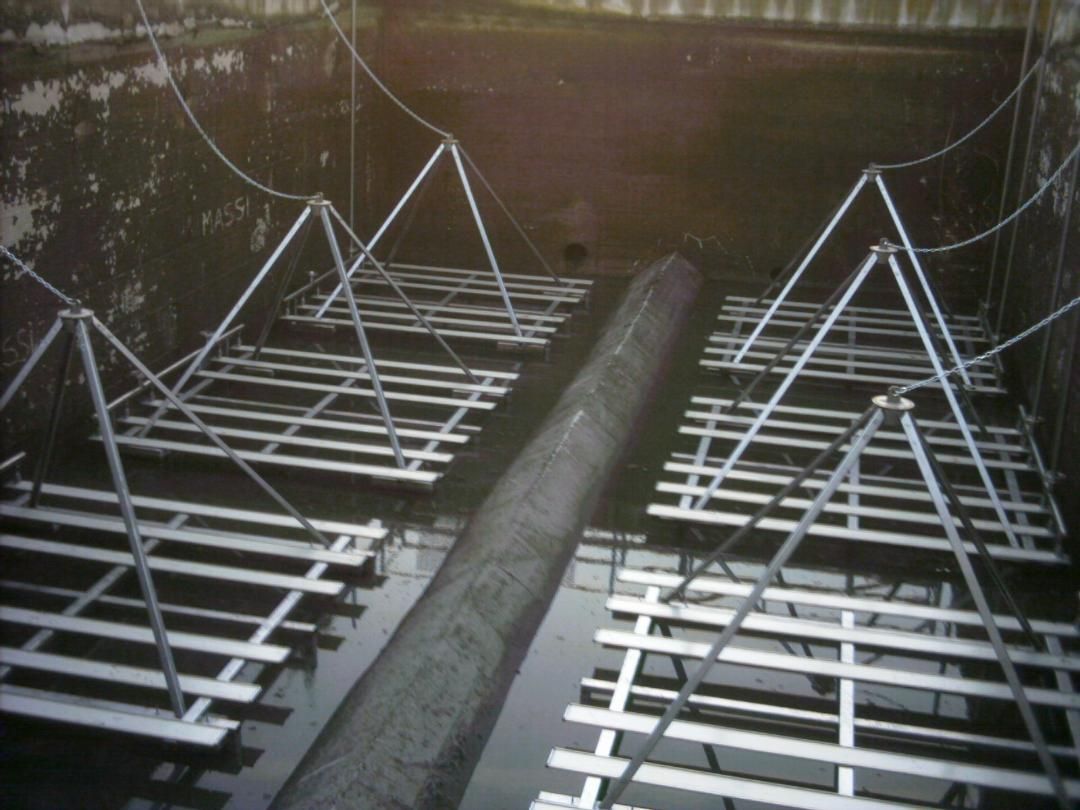 Il carroponte durante la sua corsa in andata non è a contatto con il fondo mentre la lama superficiale raccoglie le schiume in galleggiamento e le convoglia in un’ apposita vaschetta di raccolta.